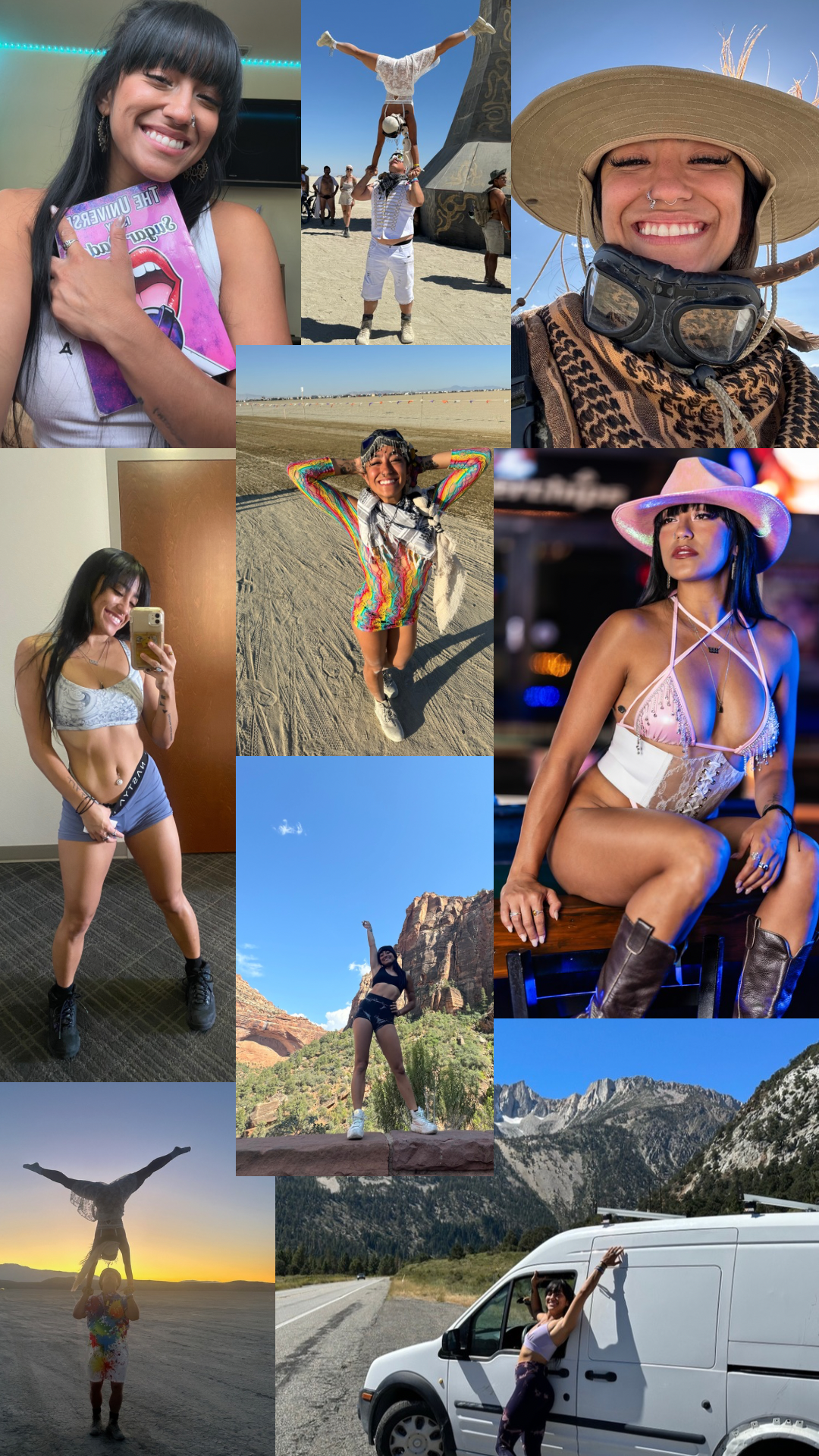 Life today is filled with travel, connection, and freedom… vibing at festivals, sipping fancy water, and helping people glow up from the inside out.